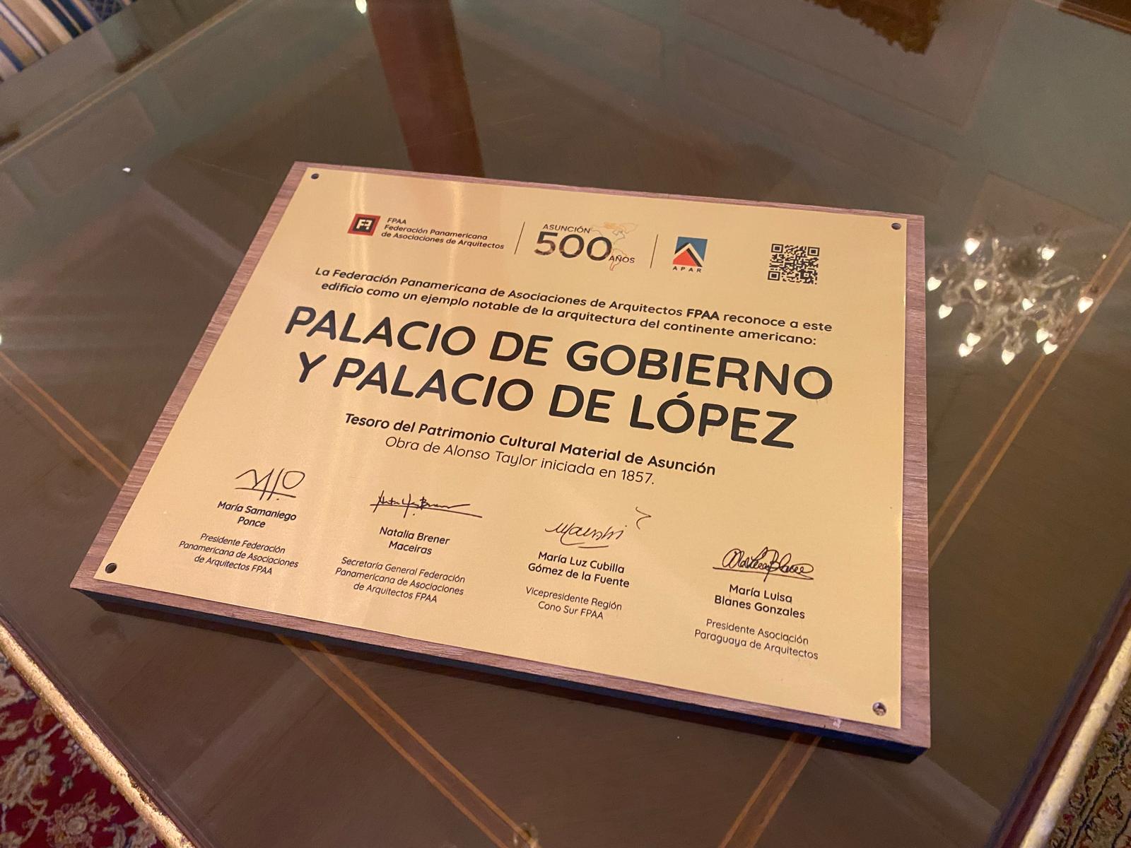 En la tercera jornada se realizó una visita guiada, en la cual se asistió al Palacio de Gobierno -también conocido como Palacio de López- al que se le hizo entrega de una placa conmemorativa, como reconocimiento institucional de la FPAA a este sitio emblemático de alto valor histórico y patrimonial.