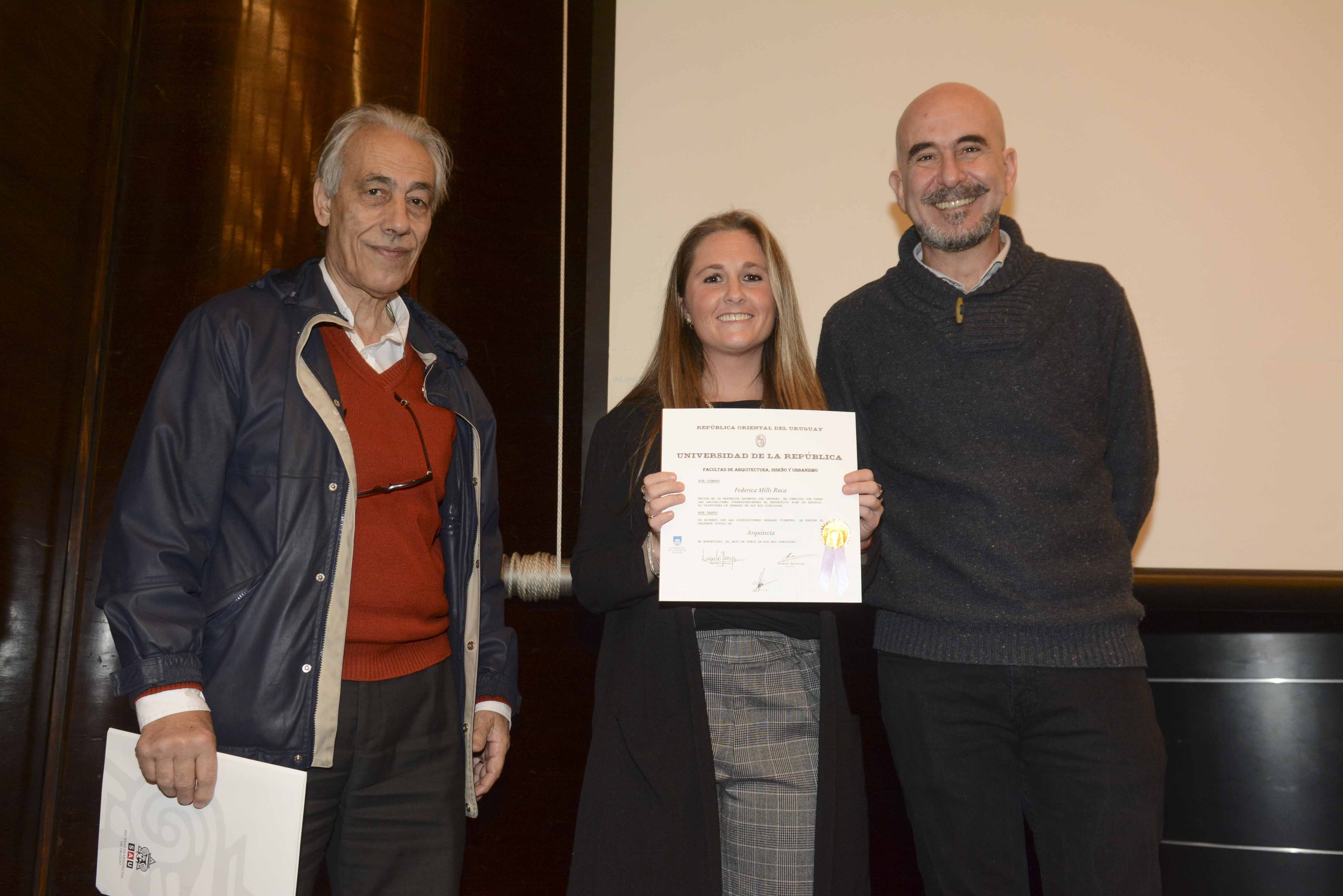 El lunes 2 de julio tuvo lugar una nueva entrega de títulos de la última generación de egresados de la Facultad de Arquitectura, Diseño y Urbanismo. En la ceremonia realizada en el Salón de Actos de FADU, junto al decano Arq. Marcelo Danza, estuvo presente el presidente de SAU Arq. Álvaro López.